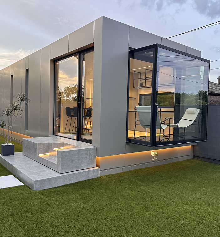 The home is conceived as a modular KEU unit tailored to the lifestyle of its guests, blending automotive engineering with the tranquility of the wine-growing landscape. The program is organized around intimate and open spaces, with an exterior axis that articulates the relationship between interior and nature. The layout takes advantage of Burgundy’s gentle topography, creating a discreet platform that opens toward the vineyards, while the architectural strategy focuses on extreme personalization: advanced home automation, an outdoor jacuzzi, and gourmet breakfasts that transform the stay into a complete sensory experience.