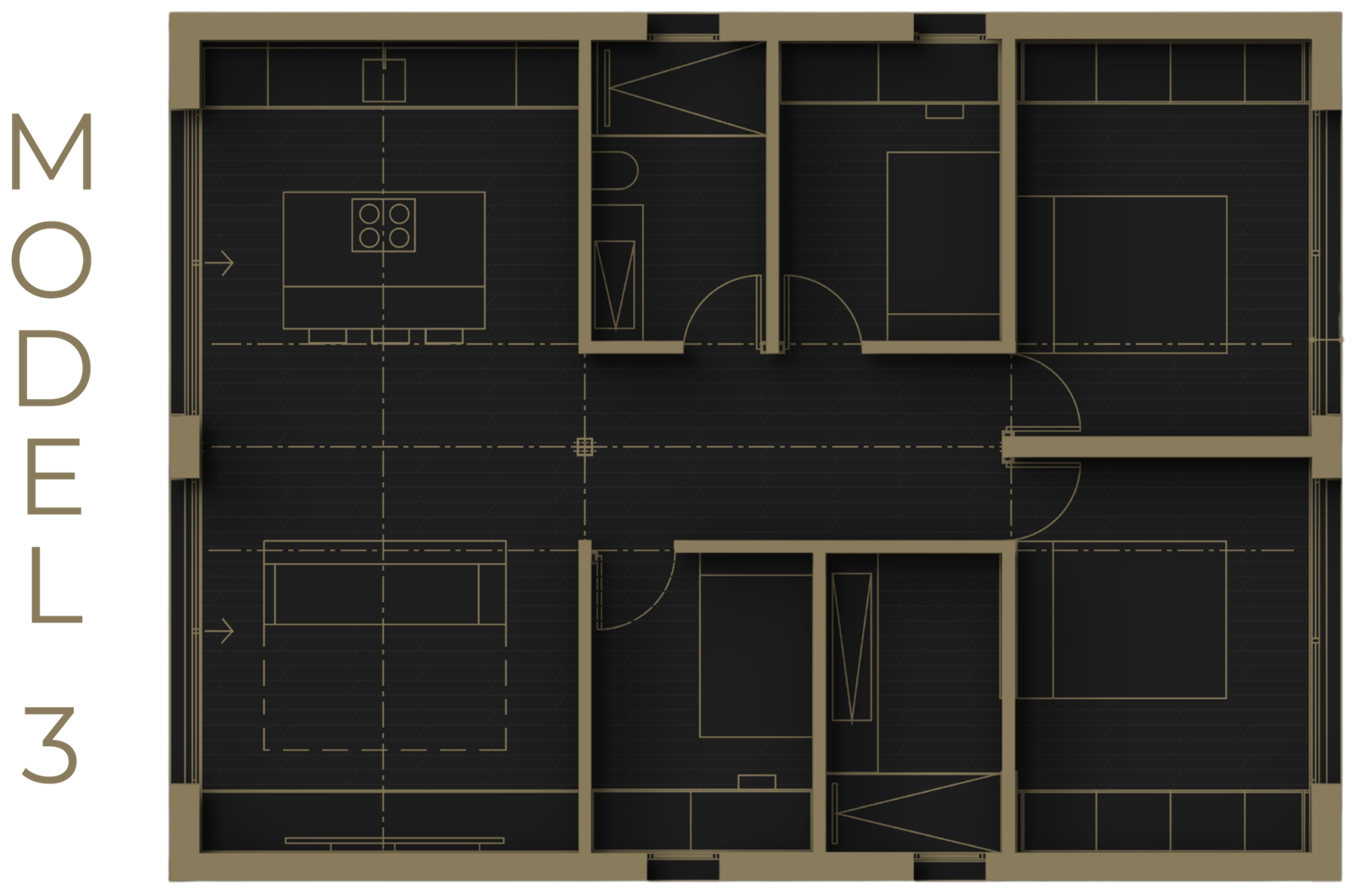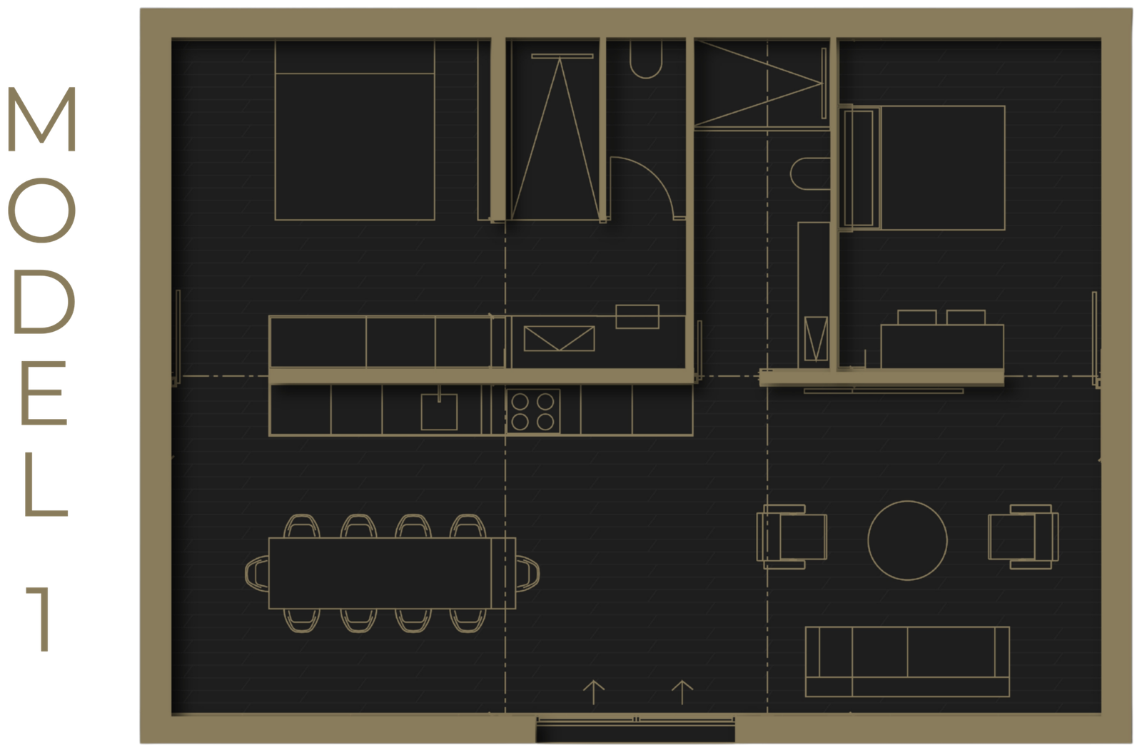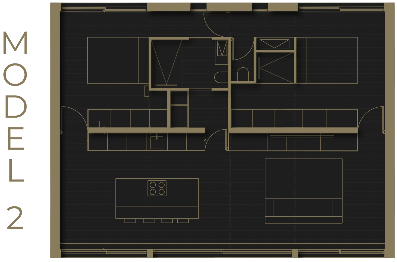 O carro-chefe da coleção KEU, 77 m² de pura presença arquitetónica. A KEU XL oferece dois quartos independentes, acabamentos de primeira qualidade e integração total de domótica.