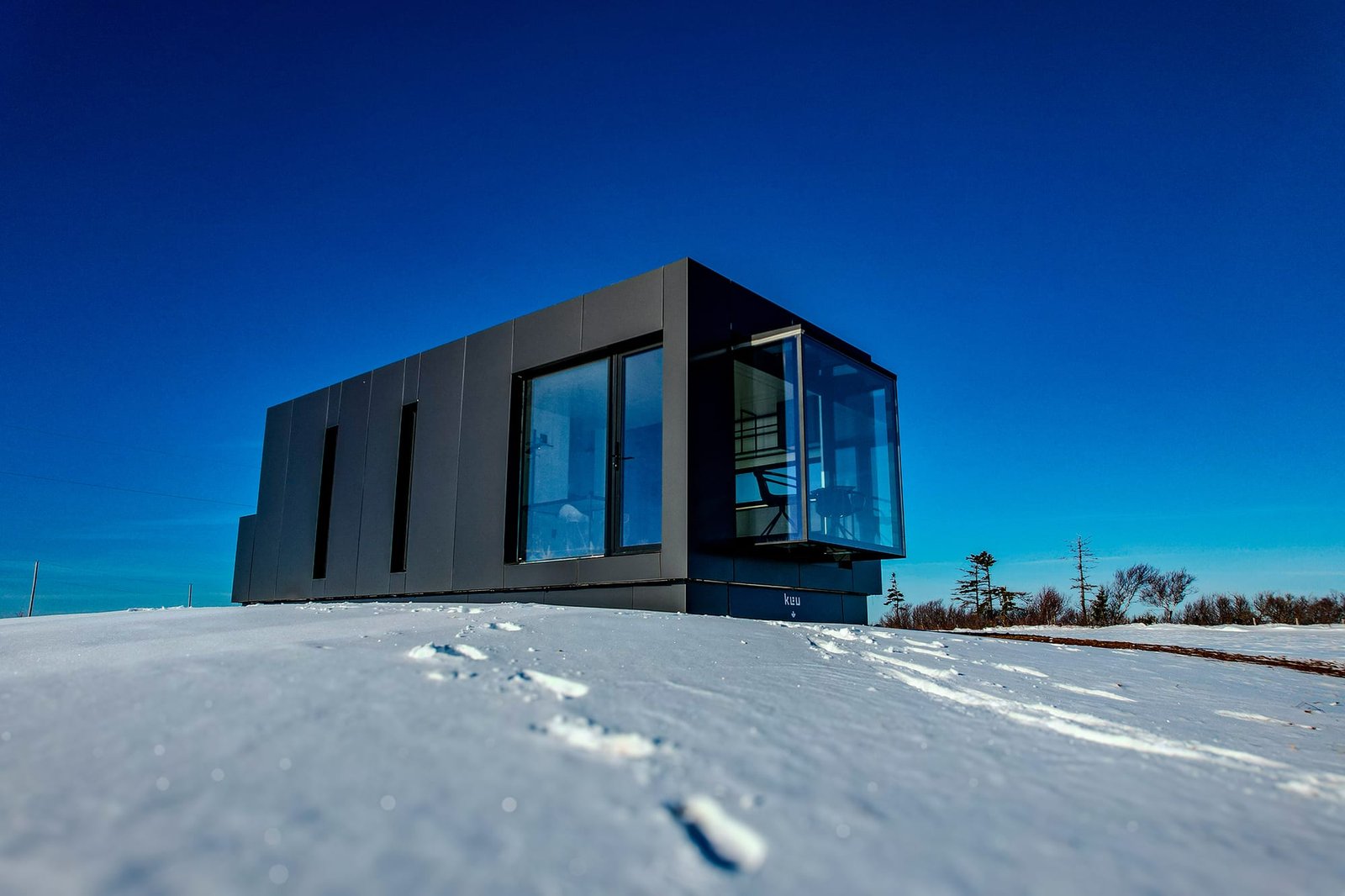 355 ft² / 33 m². Smart prefabricated home, Ready-to-Live, with two bedrooms, a bathroom and an equipped kitchen. Second home. Download the catalog of our KEU Nomad model: